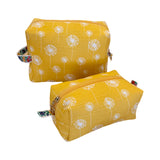 Pamuklu sarı kanvas üzeri dandelyon çiçek deseni baskılı yumuşak çantalardır. 2 boydur. Kozmetik çanta olarak yada seyahatlerde bavul içinde yada her türlü aksesuarınızı saklamak amaçlı kullanabilirsiniz.