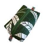 Pamuklu yeşil kanvas üzeri yaprak deseni baskılı yumuşak çantalardır. 2 boydur. Kozmetik çanta olarak yada seyahatlerde bavul içinde yada her türlü aksesuarınızı saklamak amaçlı kullanabilirsiniz.