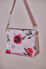 Pembe Çiçekli Portföy Çanta (Çapraz Askılı)