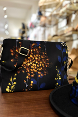 Siyah Çiçekli Portföy Çanta (Çapraz Askılı)