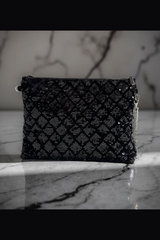 Siyah Payetli Portföy Çanta (Çapraz Askılı)