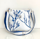 İçinde 1 cep vardır. Fransız Mavi kolon üzeri pırıltılı fransız krem şeritli ayarlanabilir askısı vardır. Gümüş metal aksesuarlıdır. Hafifdir. Yaz için idealdir.
