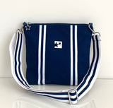 İçinde 1 cep vardır. Fransız beyaz pamuklu kolon üzeri lacivert beyaz şeritli ayarlanabilir askısı vardır. Gümüş metal aksesuarlıdır. Hafifdir. Yaz için idealdir.